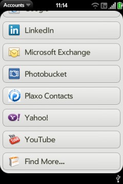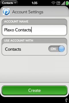 Add a new account type in the webOS Contacts app for our new outside data source (Plaxo)